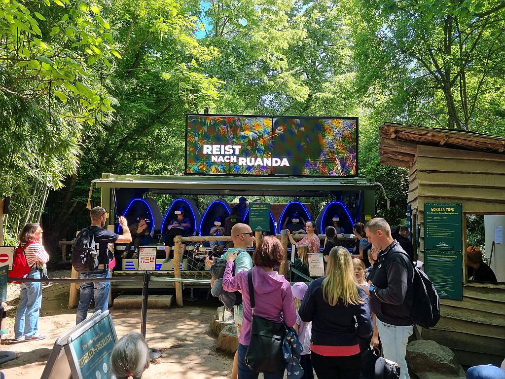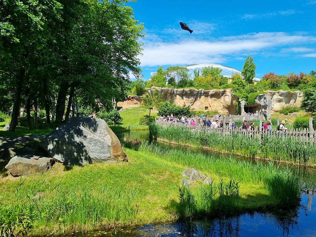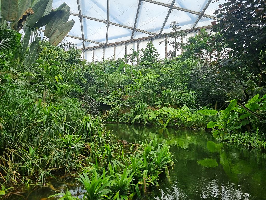 Das erste wirkliche Highlight war die 16.500 m² große Riesentropenhalle namens Gondwanaland. In der nach dem Urkontinent auf der Südhalbkugel benannten Halle werden bei Temperaturen von 24 bis 26 °C und einer Luftfeuchtigkeit von 65 bis 100 Prozent etwa 100 Tierarten sowie 17.000 tropische Pflanzen gezeigt. Und für 2,50 Euro pro Person kann man mit einem Boot (oder eine Schaluppe, einem Dingi, einem Schiff oder einem Kahn – wir sind uns da traditionell nicht so einig) durch fahren.