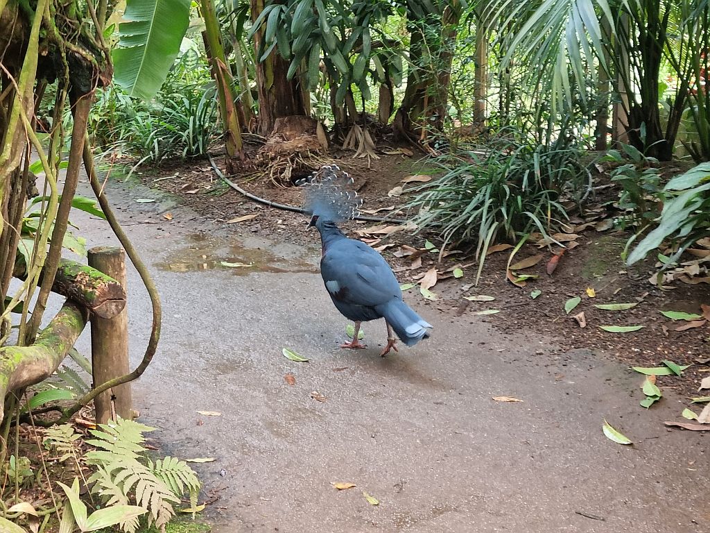 Vögel gab es auch und teilweise liefen die auch auf den Wegen herum. Und hatten weniger Probleme mit der hohen Luftfeuchtigkeit als wir.