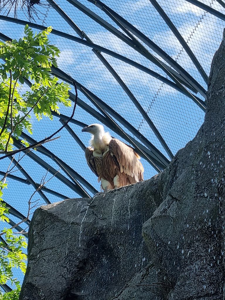 Insofern waren wir dann auch leicht froh wieder draußen zu sein und eines der alten Freiluftgehege zu sehen, in dem ein paar Geier ihre Runden drehten.