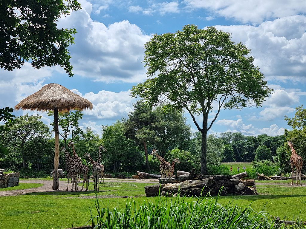 Aber das ist am Ende auch nur ein Klischee, denn natürlich war eine absolute Mehrheit der Leute nett, freundlich, glücklich und genoss einfach den Besuch im Zoo. Den wir dann, nachdem Bier und Radler ausgetrunken waren, mit den Giraffen fortsetzten, die auf der 2004 eröffneten Kiwara-Savanne herumstanden. Kennen wir ja aus Südafrika noch, dass diese Tiere im Grunde nur stehen und essen.