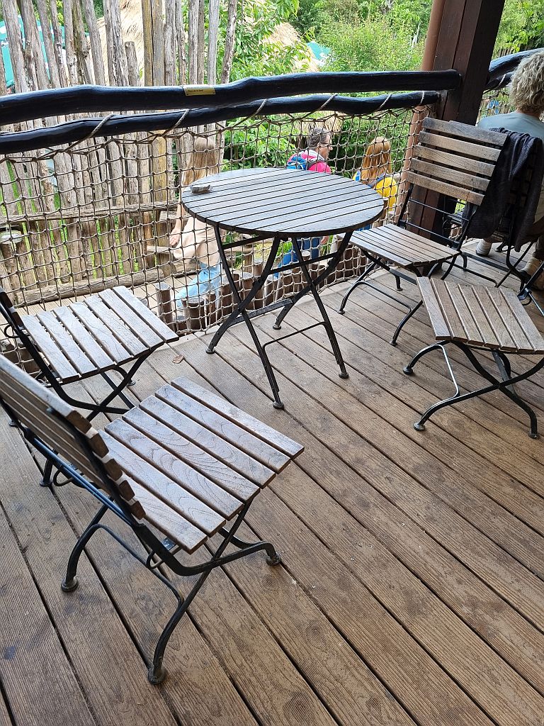Da wir beim letzten Halt kein Essen gefunden haben, wollten wir das am Restaurant neben der Savanne nachholen. Eine Idee, die wir nicht wirklich exklusiv hatten, weswegen wir froh waren einen leeren Tisch zu finden.