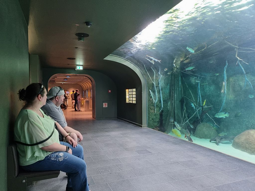 Naja, so ganz waren wir noch nicht am Ende, denn gleich zu Beginn hatten wir das Aquarium übersprungen und das wollte sich gerade Susanne noch einmal anschauen, um auch wirklich alles gesehen zu haben. Jens wurde an dieser Stelle daran erinnert, warum er früher Beckenschwimmer war und Freiwasser-Schwimmer immer für Freaks gehalten hat.
