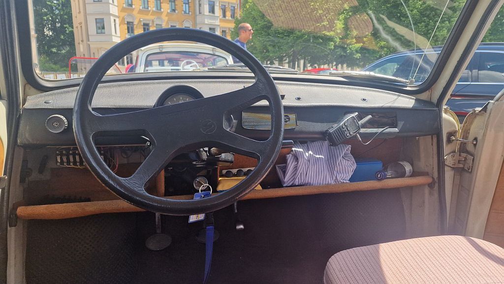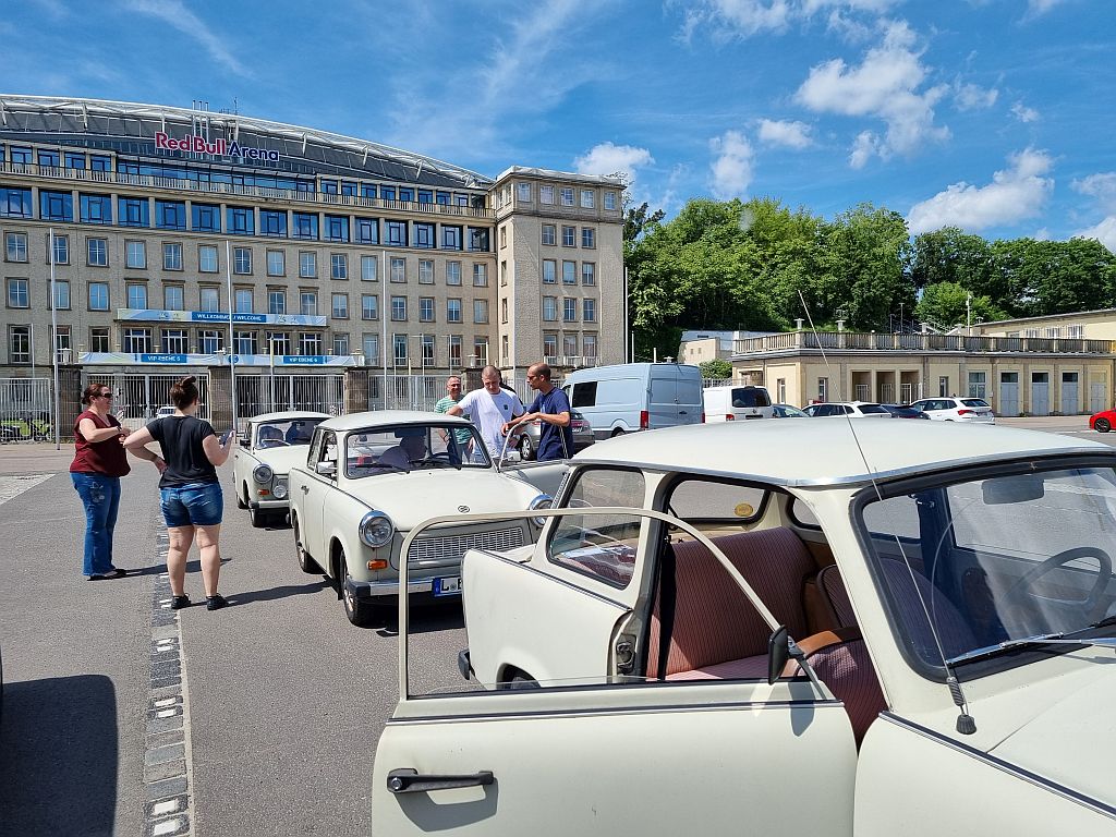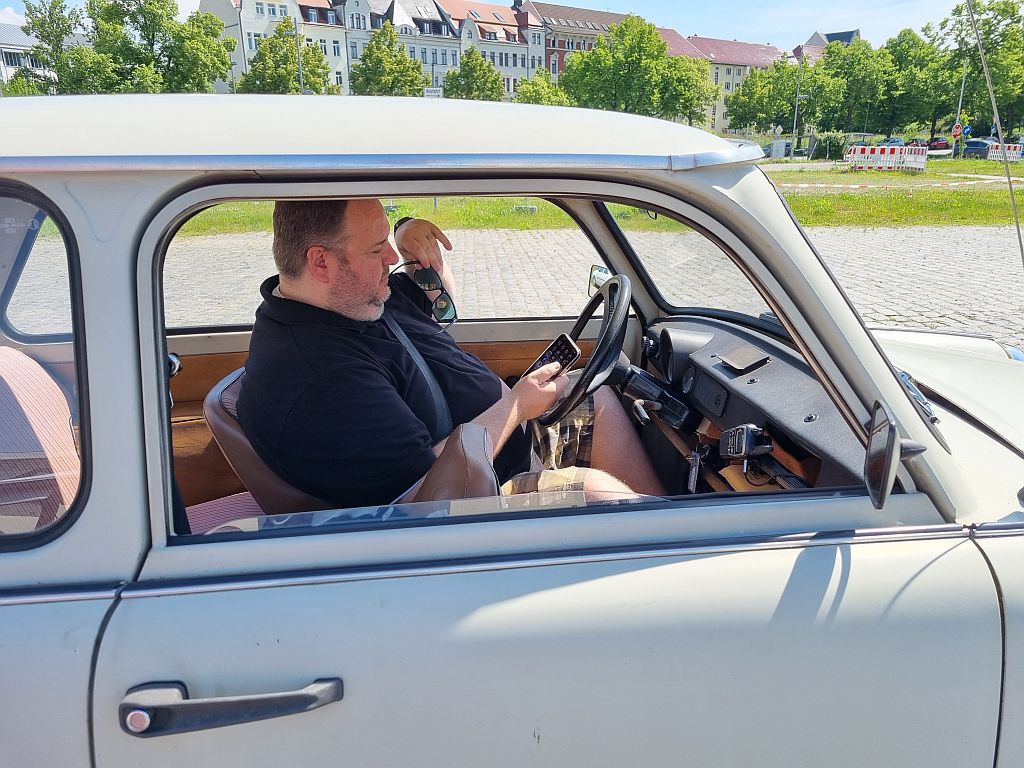 Für Jan war eine „Trabbi-Tour“ gebucht worden, unter Anleitung sollte es 90 Minuten mit dem Erzeugnis der VEB Sachsenring durch Leipzig gehen.