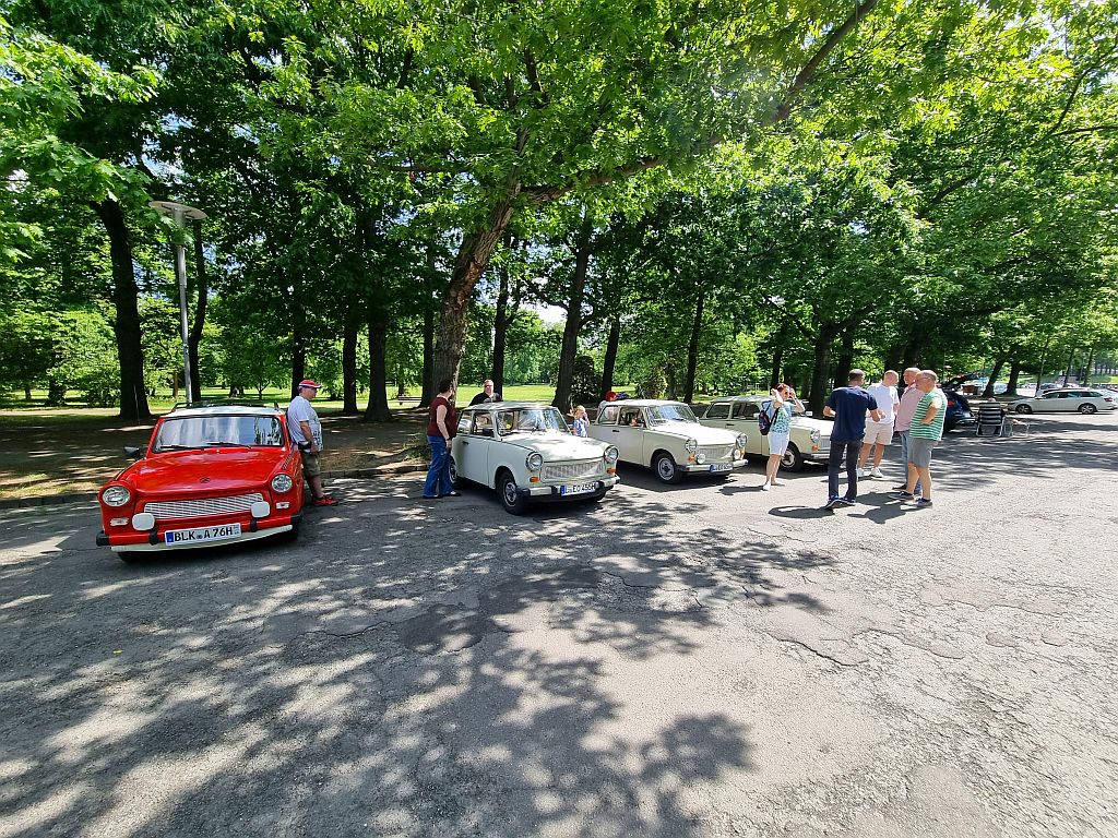 Dies und noch viele andere, sportbezogene Themen besprachen wir im Sonnenschein und rund um unsere Trabbis herum.