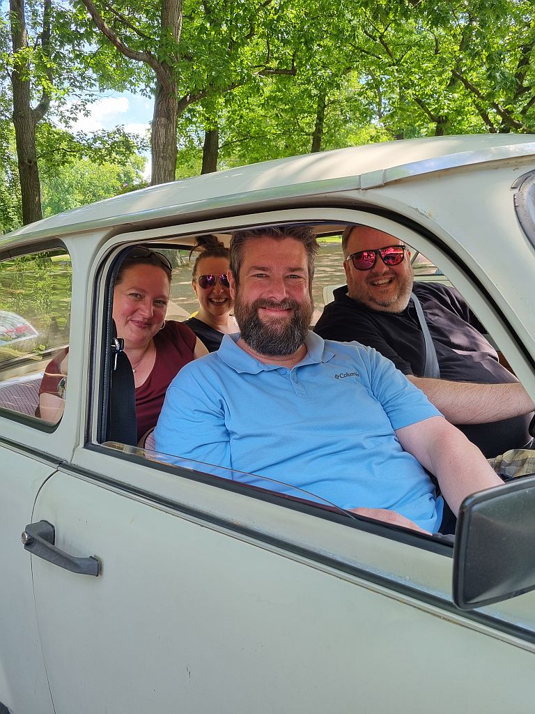 In dem Stile ging es dann zurück zum Ausgangspunkt, weiter mit Humor, Info und Freude geleitet vom roten Trabanten vorneweg.