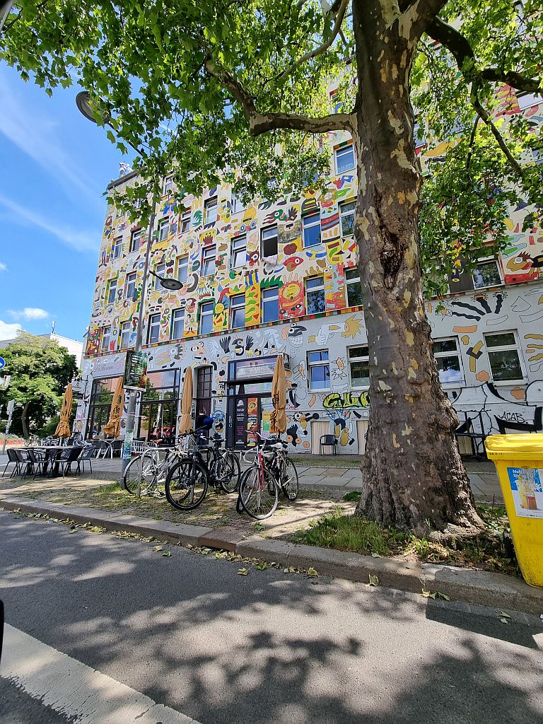 Es ging langsam in den Stadtteil Zentrum-Süd über die Karl-Liebknecht-Straße, umgangssprachlich auch „Karli“ genannt, sie mögen die Verniedlichungen hier in Leipzig. Dies ist eine bedeutende Straße 2,5 Kilometer lange Straße, die vom Zentrum bis zum Vorort Connewitz führt. Und die ein eher alternativ angehauchter Stadtteil ist, was erfrischend bunt aussah.