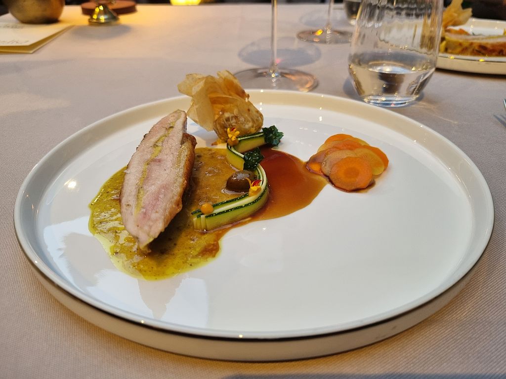 Zeit für den Hauptgang, was durch das Fehlen eines Löffels angekündigt wurde. Oder im Falle von Jens durch das Fehlen eines zweiten Messers – ein kleiner Insider zwischen uns und einem Kellner, der zwei Mal anstelle eines Löffels ein zweites Messer hingelegt hat. Was übrigens auch zeigen soll, dass der Service auch oft seine schönen Seiten heute Abend hatte. Und für die Gäste kann kein Restaurant der Welt etwas.