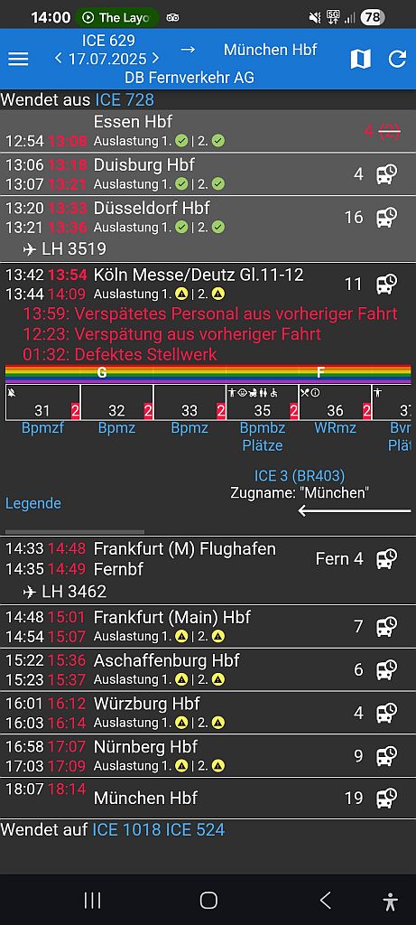 Soweit die Idee. Bis dann die DB App folgendes zeigte: