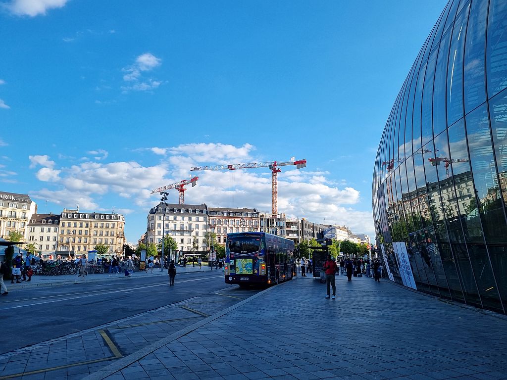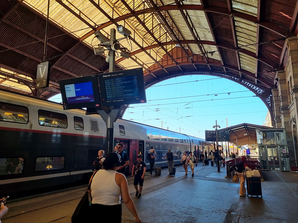 Erst einmal aus dem Bahnhof Strasbourg raus, der übrigens der dritte „Hauptbahnhof“ der Stadt ist, nach dem 1841 eröffneten ersten und 1851 eröffneten zweiten Bahnhof. 1883 wurde dann der jetzige Bahnhof von der deutschen Verwaltung im Deutsch-Französischen Krieg erbaut und seitdem genutzt.