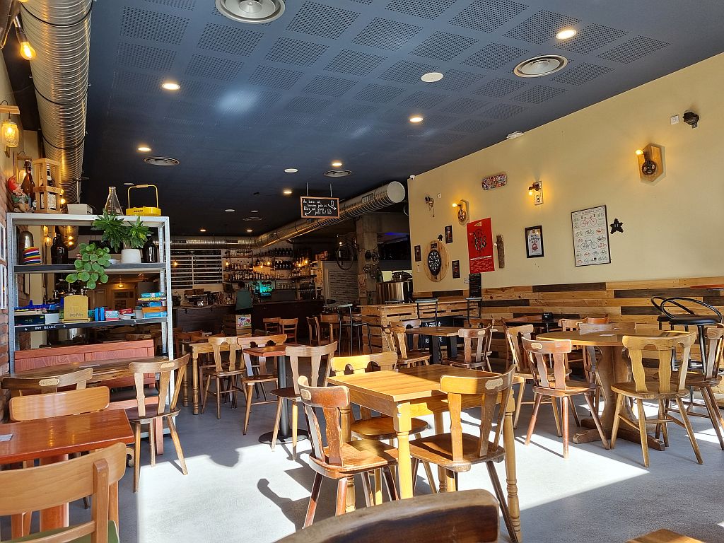 Draußen wollten wir bei den hohen Temperaturen nicht sitzen bleiben, also setzen wir uns rein. Neben uns war nur noch eine Familie drinnen und die Belegschaft. Bestellen musste man an der Theke, das Menü konnte man bei Untappd lesen.
