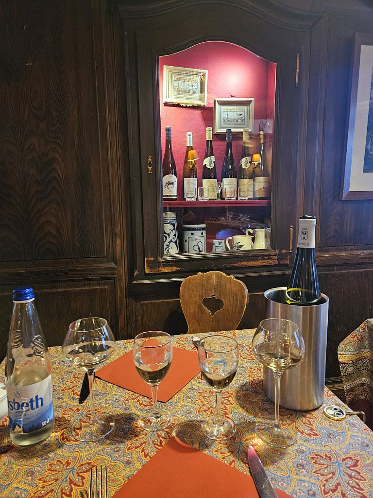 Beim Wein hörten wir auf das Fachpersonal und bestellten einen schönen Riesling von der Domaine Kientzler, einem Weingut in fünfter Generation aus Ribeauvillé.