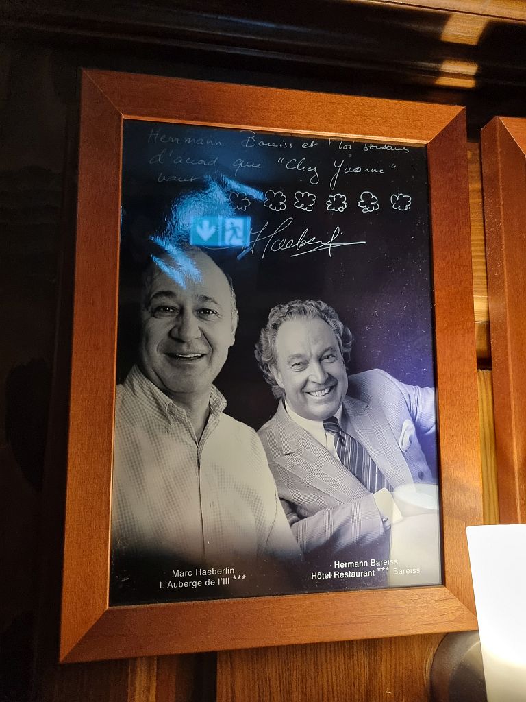 Im Jahr 2001 übergab sie die Zügel an Jean-Louis de Valmigère, der die Seele und den Ruf des Hauses bewahrte. Seine Kinder werden das Haus bis 2021 weiterführen bis dann die heutigen Besitzer, die Familie Burrus, die Leitung übernehmen. Chez Yvonne gilt im Elsass als ein symbolträchtiges Restaurant mit einer einzigartigen Atmosphäre. Und die wollten wir uns mal anschauen.