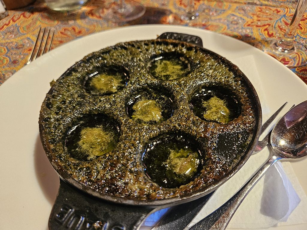 Beim Essen konnten wir uns … eher weniger zurückhalten. Meike nutzte die Gelegenheit für eine weitere Portion Schnecken.