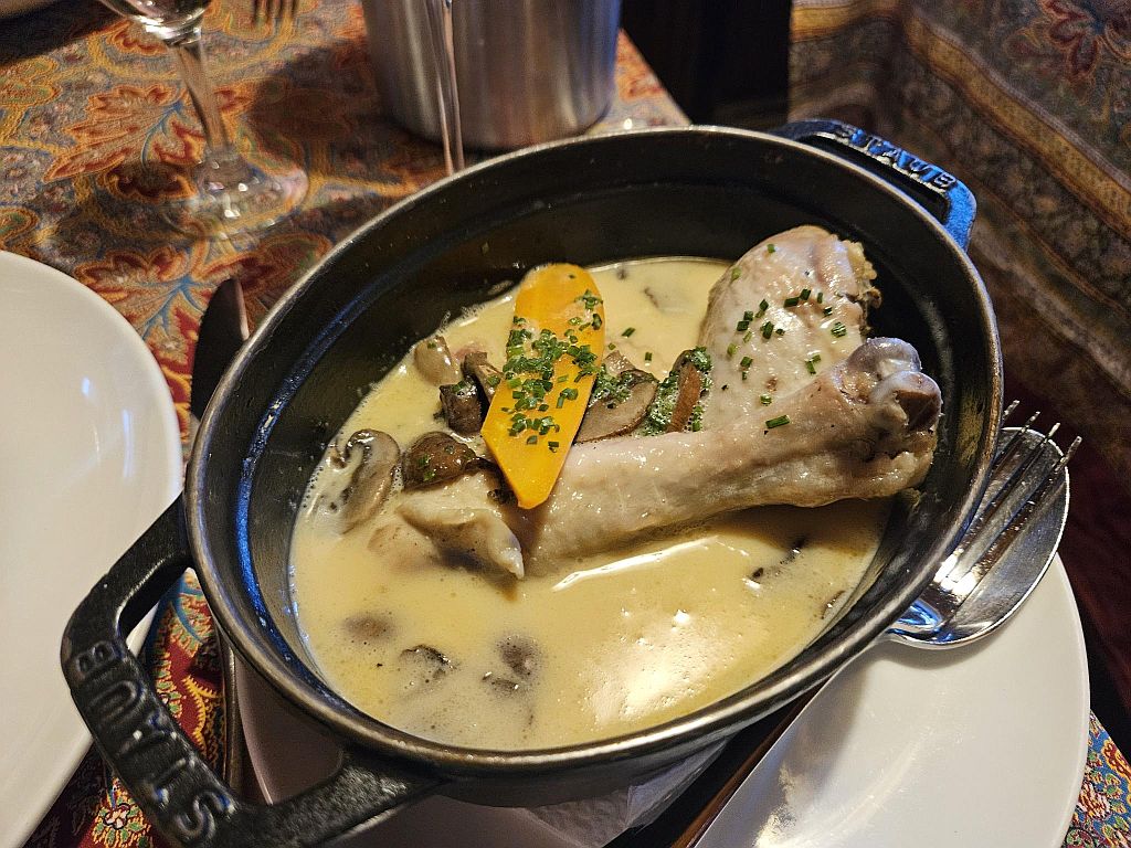 Meikes Essen war dagegen noch besser: Ein mit Niedertemperatur gegarter junger Hahn, eine Pilz-Rahm-Sauce und perfekten Spätzle.