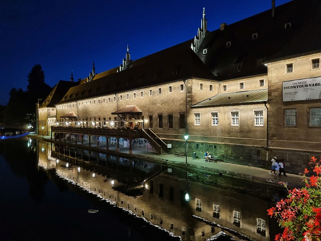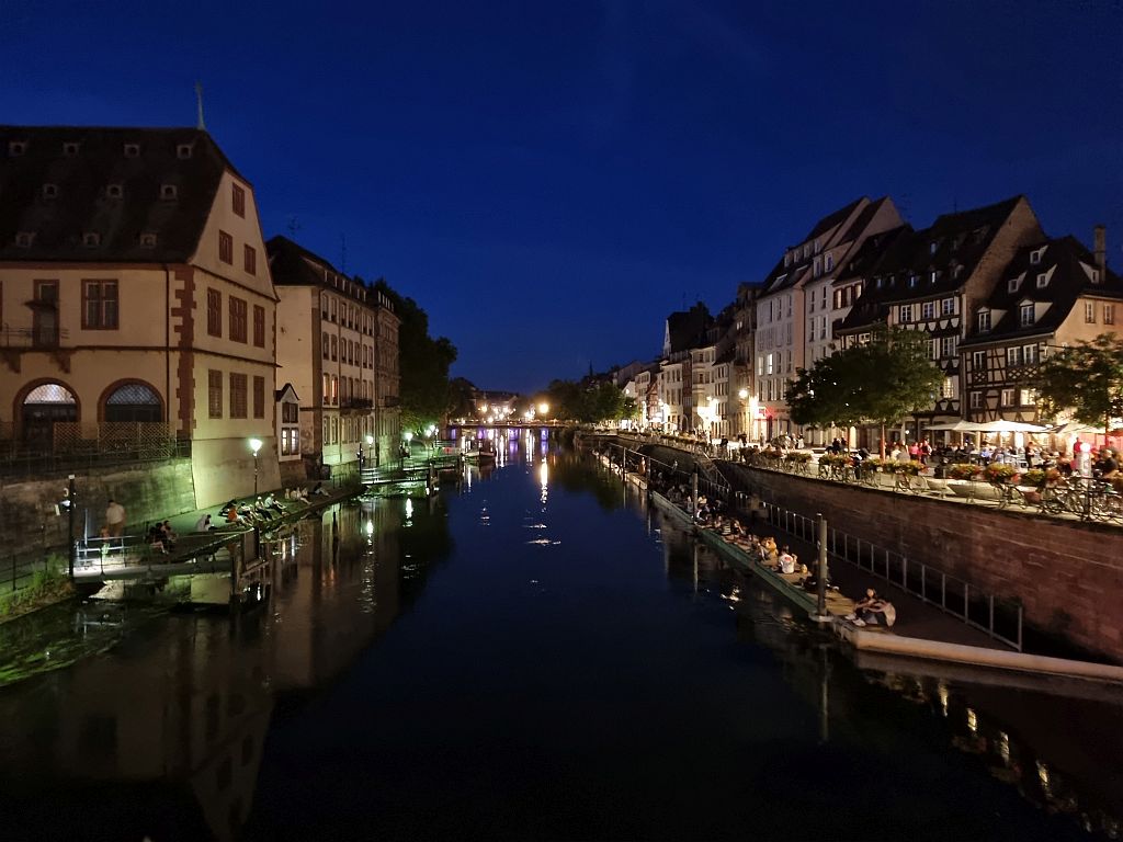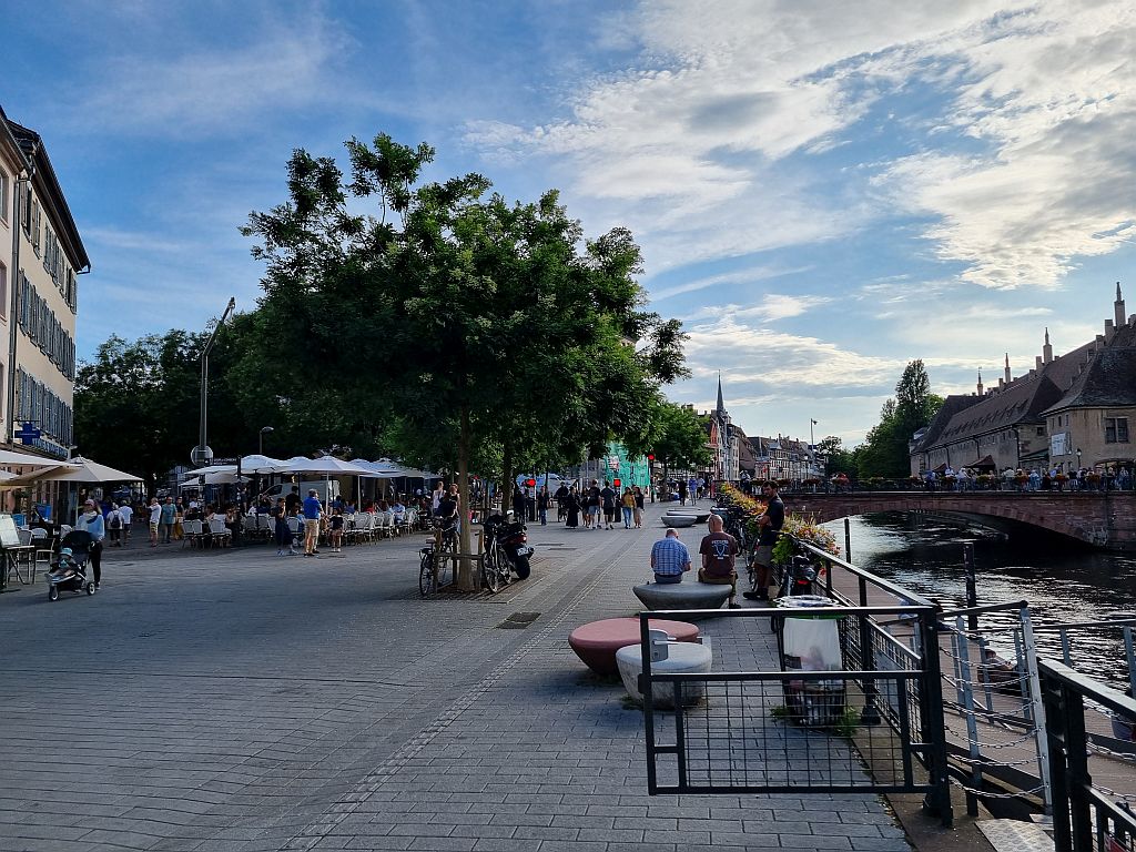 Noch ein Vorteil: Vom Hotel konnten wir wieder zu Fuß gehen, einmal vorbei am Flammkuchen-Laden des ersten Abends an der Ill entlang.