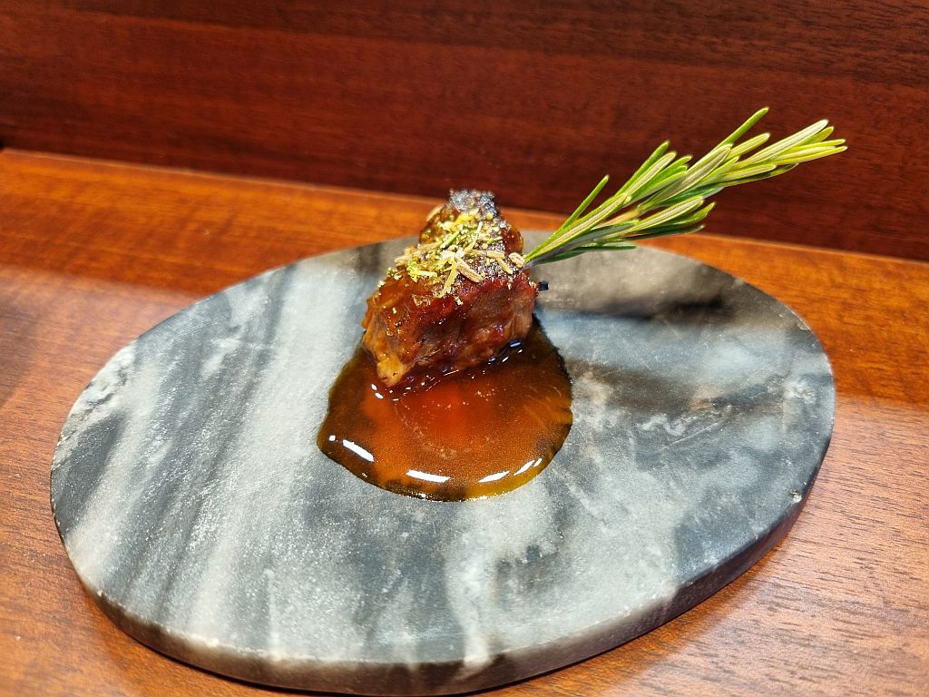 Zusätzlich zum Kalb gab es übrigens noch eine geschmorte Backe mit Kräutern, quasi als Zugabe.
