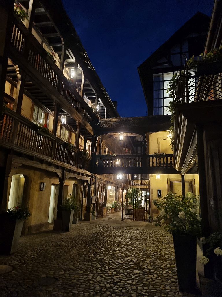 Und schon waren wir da, etwas zu früh. Gegenüber dem Palais Rohan, dem 1741 fertiggestellten architektonischen Meisterwerk was wir ja gestern anschaut hatten, liegt in einem alten aber 2023 renovierten Handelshaus das Restaurant 1741. Hier hat Chef Jérémy Page das Zepter in der Hand und kreiert nach seiner Ausbildung bei Robuchon delikate, präzise Rezepte, die mit kleinen Anspielungen auf das Elsass gespickt sind.