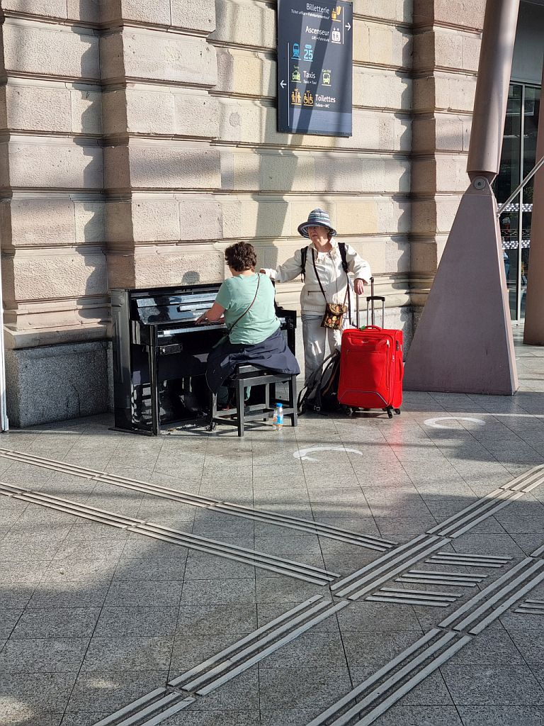Passend zum Ambiente spielte eine Dame auch an einem öffentlichen Klavier. Schöne Stimmung, wir machten uns aber weiter auf die Suche nach etwas zu Essen.