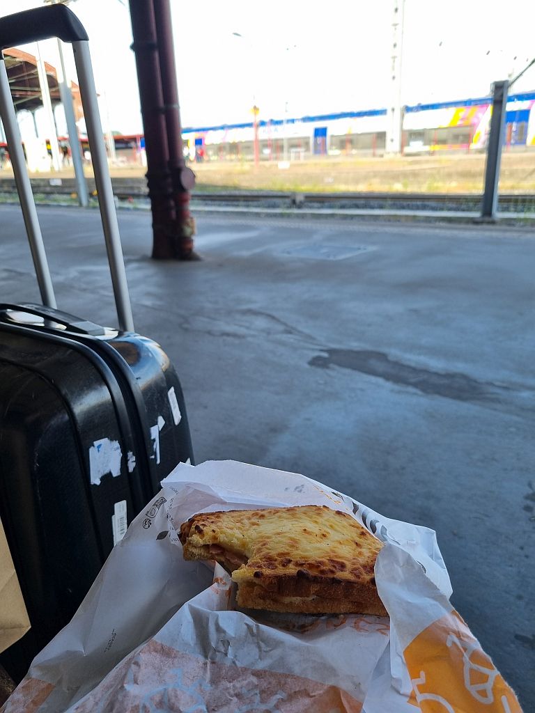 Das fanden wir in einem kleinen Bäcker an einem Ende des Bahnhofes. Viel Auswahl gab es aber auch nicht, was aber nicht schlimm war. Mit unserem Frühstück suchten wir uns ein nettes Plätzchen am Bahnsteig.