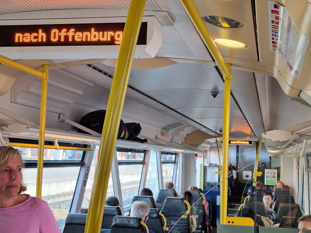 Nachdem wir bei Kehl über den Rhein und damit zurück in Deutschland waren, gab es auch eine der neuen Grenzkontrollen, wo 4 Beamte die Passagiere im Zug einer Sichtkontrolle unterzogen. In der Bahn-App stand was davon, dass diese Kontrolle bis zu 15 Minuten dauern kann, heute bei uns waren es keine 4 Minuten und es ging weiter.