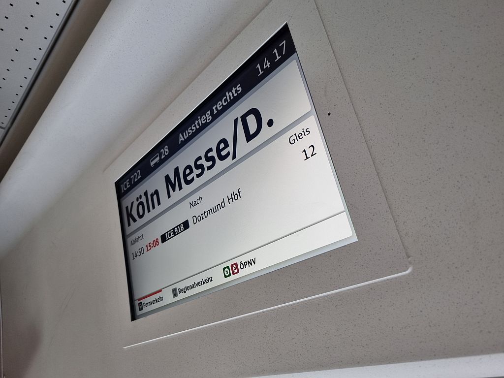 Unser ICE kam ebenfalls ein paar Minuten verspätet, weil auf dem Gleis noch ein anderer Zug stand. Immerhin durften wir am gleichen Bahnsteig bleiben. Wieder ein Abteil, wieder neben dem Klo. Naja, immerhin waren wir die meiste Zeit alleine und konnten so die Stunde bis Köln-Deutz genießen und was quatschen.