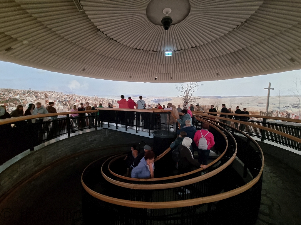 Wir bekamen Kopfhörer zum Übersetzen und lauschten der Geschichte wie das Panorama entstanden ist, wie es restauriert wurde und natürlich den Verlauf der Schlacht.