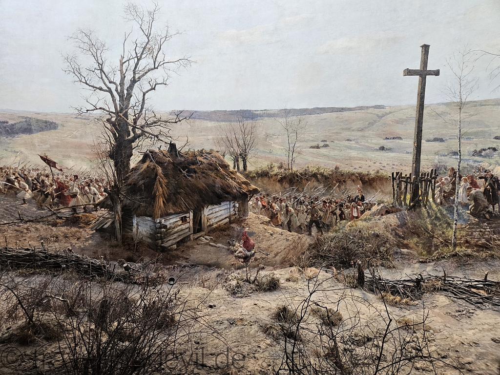 Das Panorama von Racławice ist ein beeindruckendes und monumentales Kunstwerk mit einer Größe von 15 mal 114 Metern, das die Schlacht von Racławice während des Kościuszko-Aufstands darstellt. Diese historische Schlacht war ein entscheidender Moment des Kościuszko-Aufstands, einem tapferen, aber letztendlich erfolglosen Versuch, die Unabhängigkeit Polens zu sichern. Dieses großartige Rundgemälde nimmt als eines der wenigen erhaltenen Relikte der Massenkultur des 19. Jahrhunderts einen einzigartigen Platz in der Kunstgeschichte ein und ist stolz darauf, das älteste erhaltene Panorama Polens zu sein.