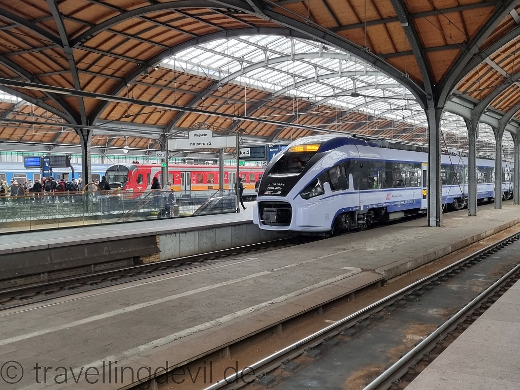 Und dann kam unser Zug, pünktlich auf die Minute. Was in Polen, genau wie Deutschland, nicht selbstverständlich ist, denn die Züge legen oft enorme Strecken zurück. Durch großzügige Aufenthaltszeiten an Knotenpunkten kann man aber recht gut eine Verspätung wettmachen.