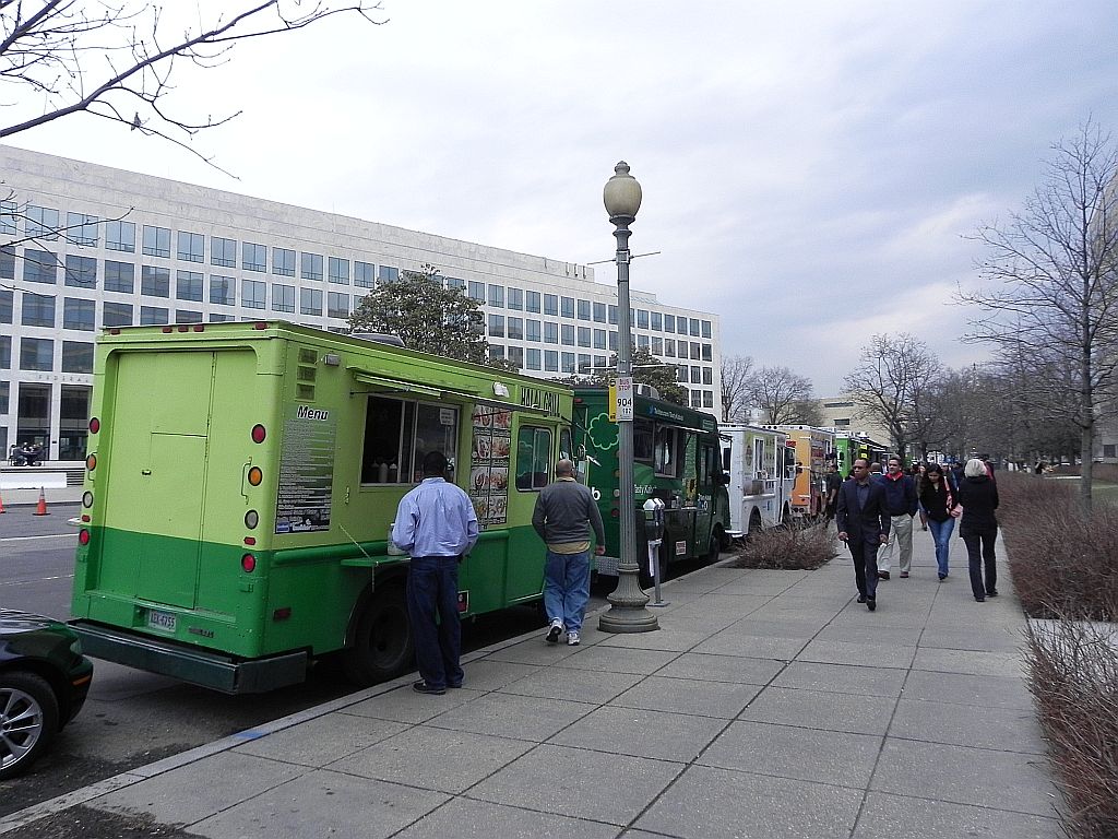 Von Arlington aus wollten wir an unserem letzten Tag noch wenigstens ein Museum besuchen. Unsere Wahl fiel auf das National Air and Space Museum, welches an der National Mall liegt und als Teil des Smithsonian Instututs ebenfalls kostenlos ist. Auf dem Weg stellte sich langsam Hunger ein, weswegen es ein toller Zufall war, dass auf dem Weg dorthin diese Food Trucks auf uns warteten …