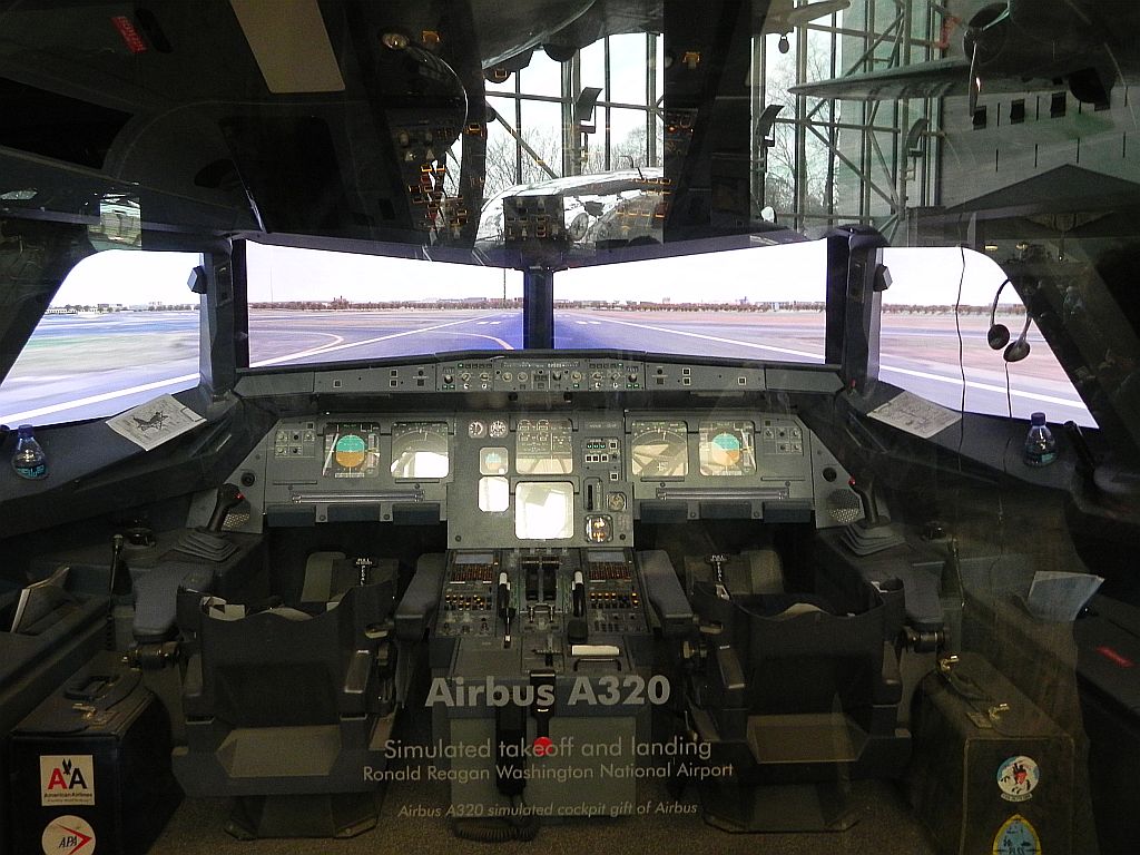 Das Cockpit eines A320 mit einem Landeanflug auf den Ronald Regean Airport in Washington (den wir zufälligerweise ein paar Tage zuvor selber erlebt haben).