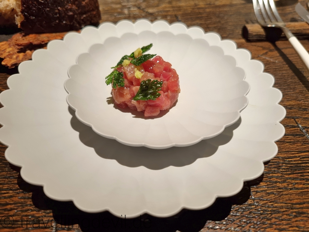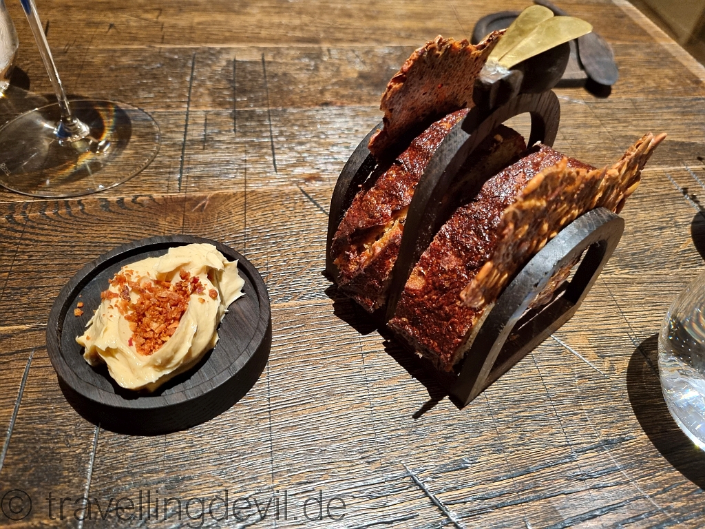 Hier gibt es dazu eine, fast schon Signature-Dish-artige, Miso-Butter mit gerösteten Zwiebeln. Und das passte hervorragend zum Sauerteigbrot.