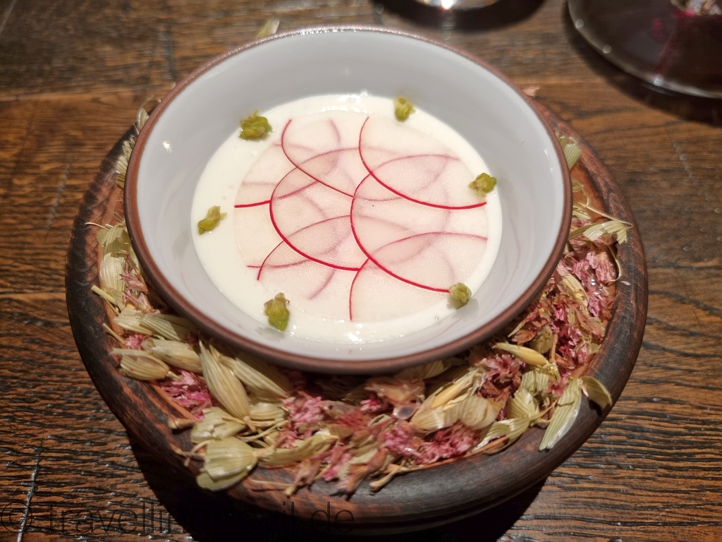 Dazu gab es einen Creme, rote Beete und Aal. Wieder etwas klassisches aber mit ein paar modernen Aspekten wir den frittierten Kapern.
