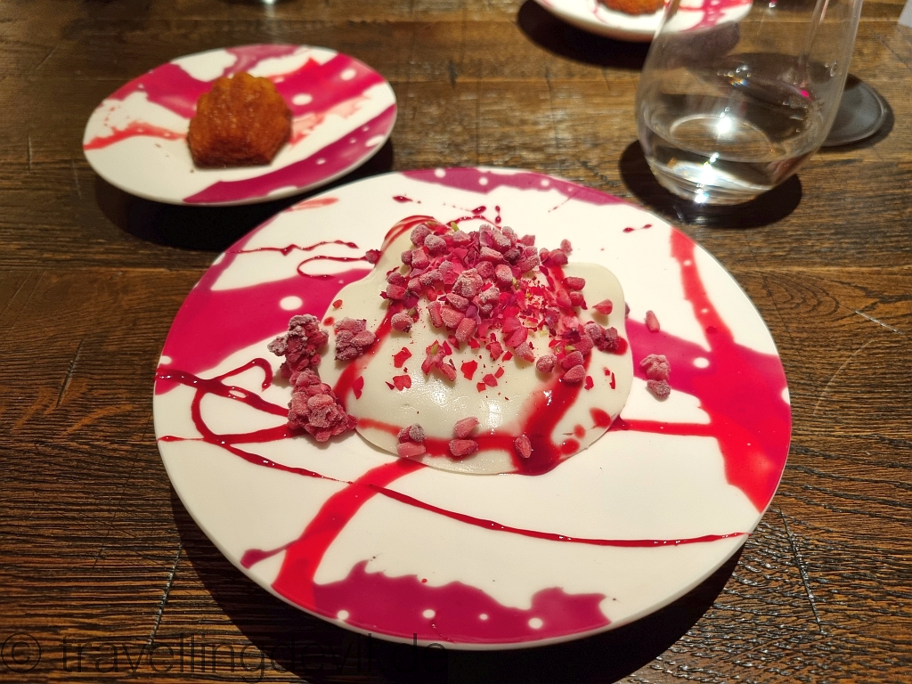 Sehr witzig und zusammen mit der Limette bereitete das den Gaumen tatsächlich gut auf den Übergang zum Süßen vor. Der Syrah passte übrigens auch hier noch.