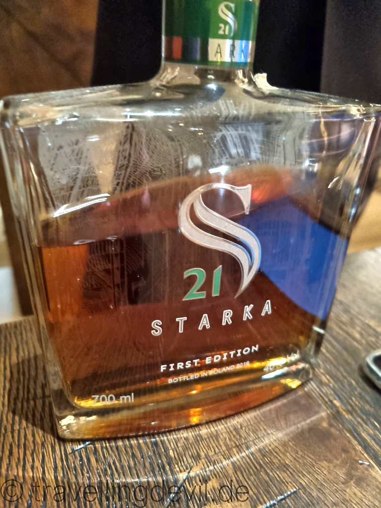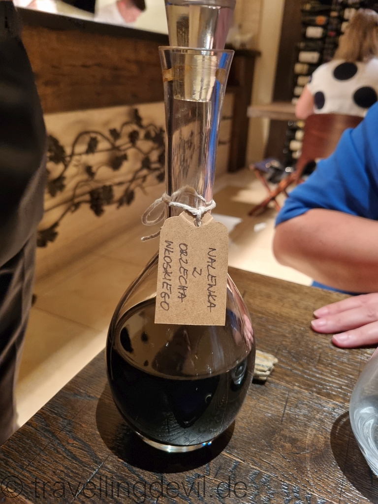 Und, naja, gerade Jens kommt halt nicht aus seiner Haut, ein Digestif ging ja auch noch. Michal zog noch einmal alle Register und brachte für Meike ein paar schöne Liköre und für Jens ein paar Optionen aus denen am Ende dieser Roggenwodka, der 21 Jahre alt in Eichenfässern gereift wurde.