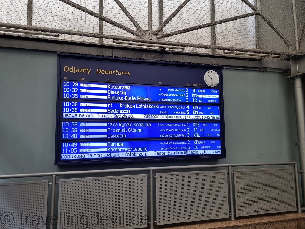 Heute stand wieder eine Bahnfahrt auf dem Programm, diesmal von Krakau in die polnische Hauptstadt Warschau. Diesmal würden wir auch wieder etwa 3 Stunden Zug fahren, also nach dem Auschecken gleich die paar Meter rüber zum Hauptbahnhof.