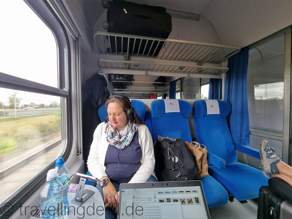 Im Abteil dann alles wie immer, nur ohne kleine Digitalanzeige und ohne gute Klimaanlage. Aber die Sitze waren gleich bequem und so richteten wir uns wieder ein und ließen die polnische Landschaft an uns vorbei ziehen.