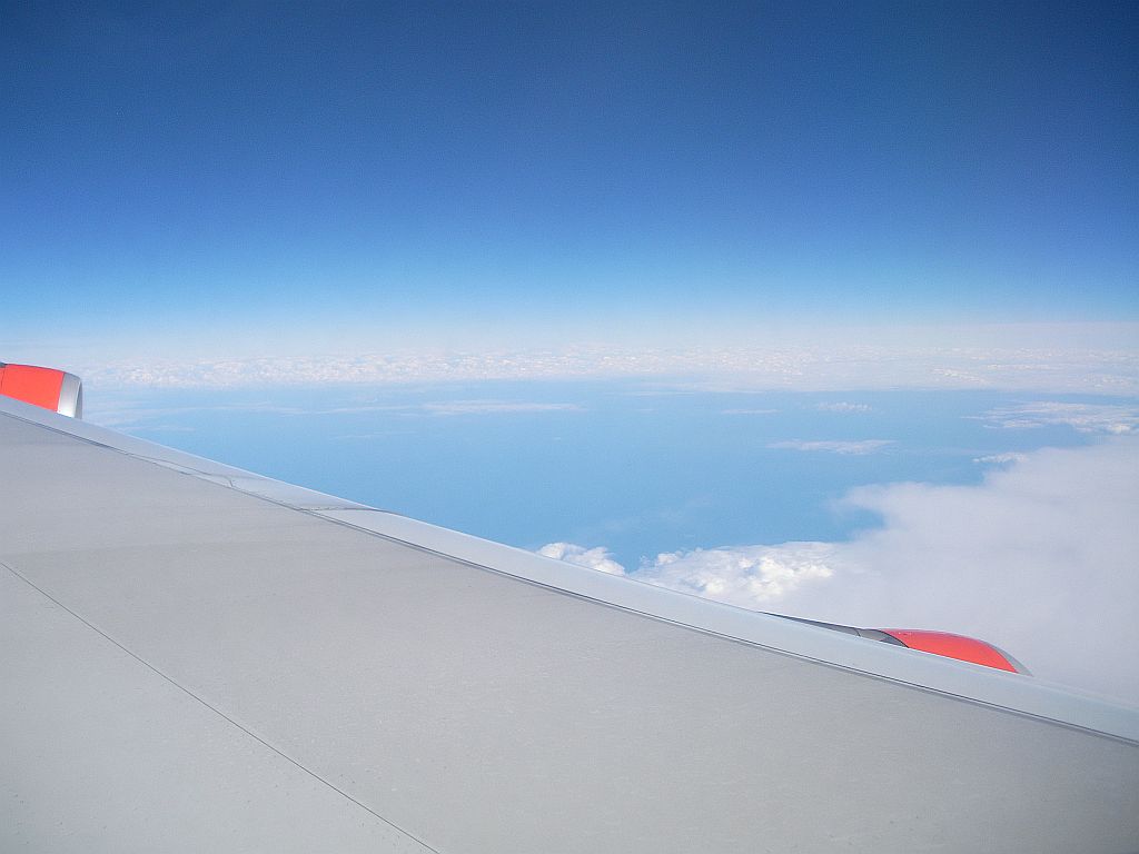 Der Flug war total ausgebucht – es wurden sogar Leute gesucht, die ihr Handgepäck einchecken, weil nicht genügend Platz in den Staufächern verfügbar ist. Aber ansonsten: Alles pünktlich und gut.