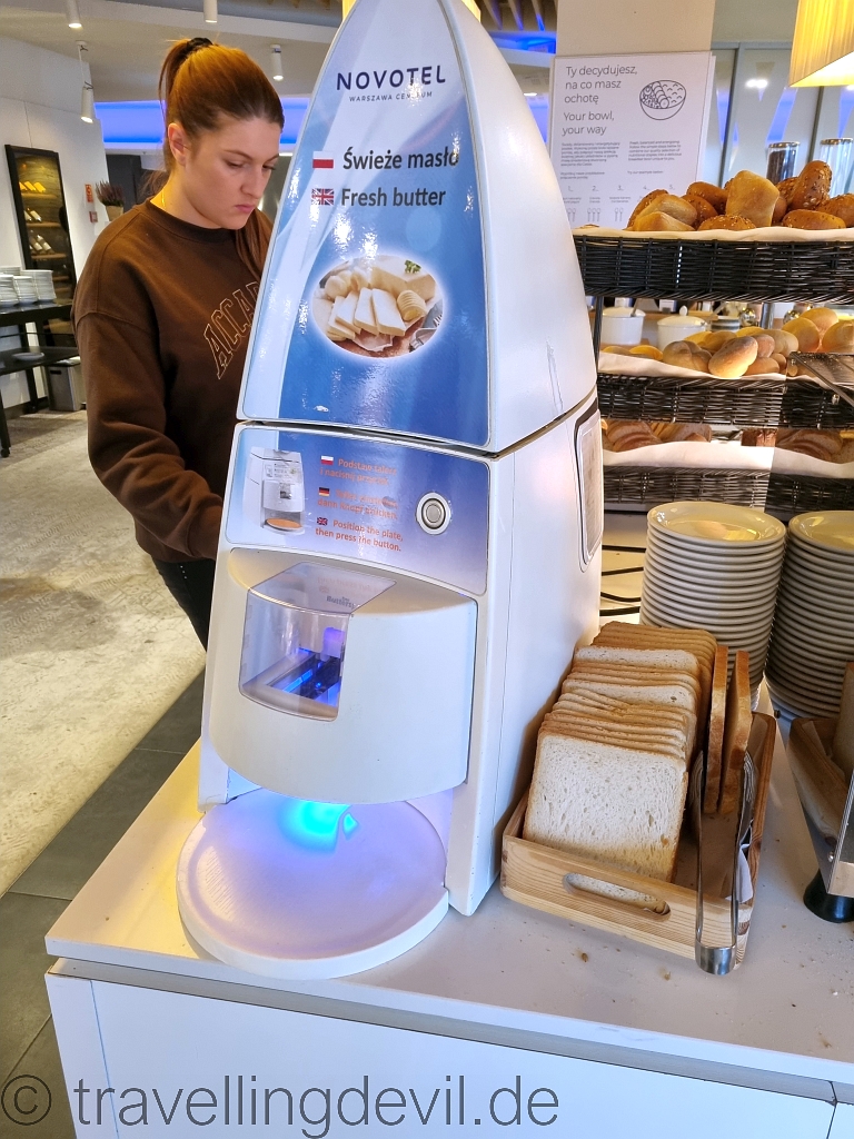 Selbst der Butter-Automat war schon eine Herausforderung für uns. Und eigentlich hätten wir als Gold-Status-Kunden von Accor einen eigenen Bereich zum Frühstücken gehabt, das haben wir aber erst nach dem Frühstück gerafft.
