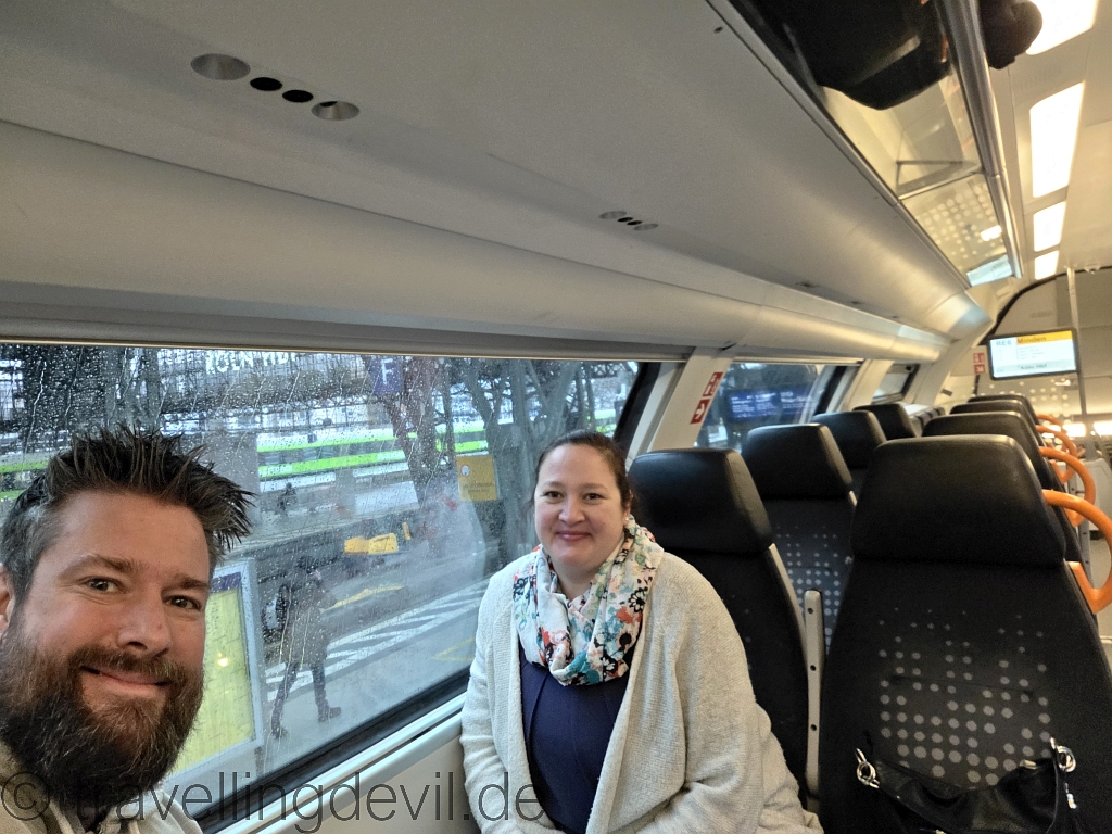 Man merkte aber, dass wir in der Zwischenzeit ein wenig in den Berufsverkehr geraten waren, denn die Bahn war recht voll und wir durften die 40 Minuten leider stehen. War aber auch auszuhalten, Jens hat sich irgendwann auch einfach auf die Stufen zum oberen Bereich gesetzt.