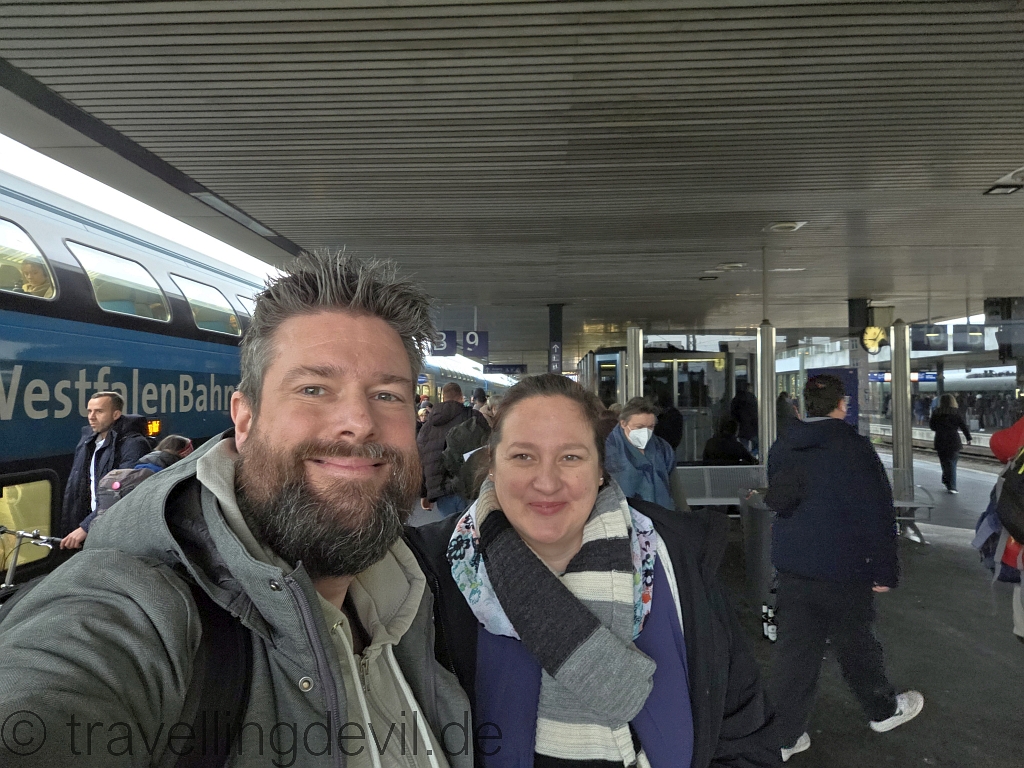 Wir fuhren aber vorbei, sammelten komischerweise jetzt hinter dem Ruhrgebiet noch mehr Verspätung auf und kamen dann mit 15 Minuten Verspätung in einem überraschend kalten und zugigen Minden an.