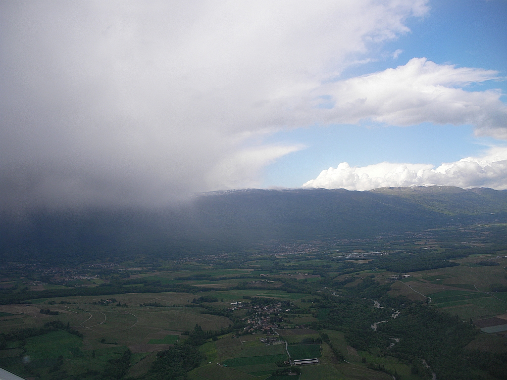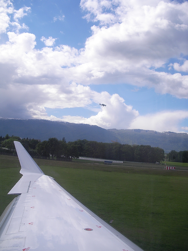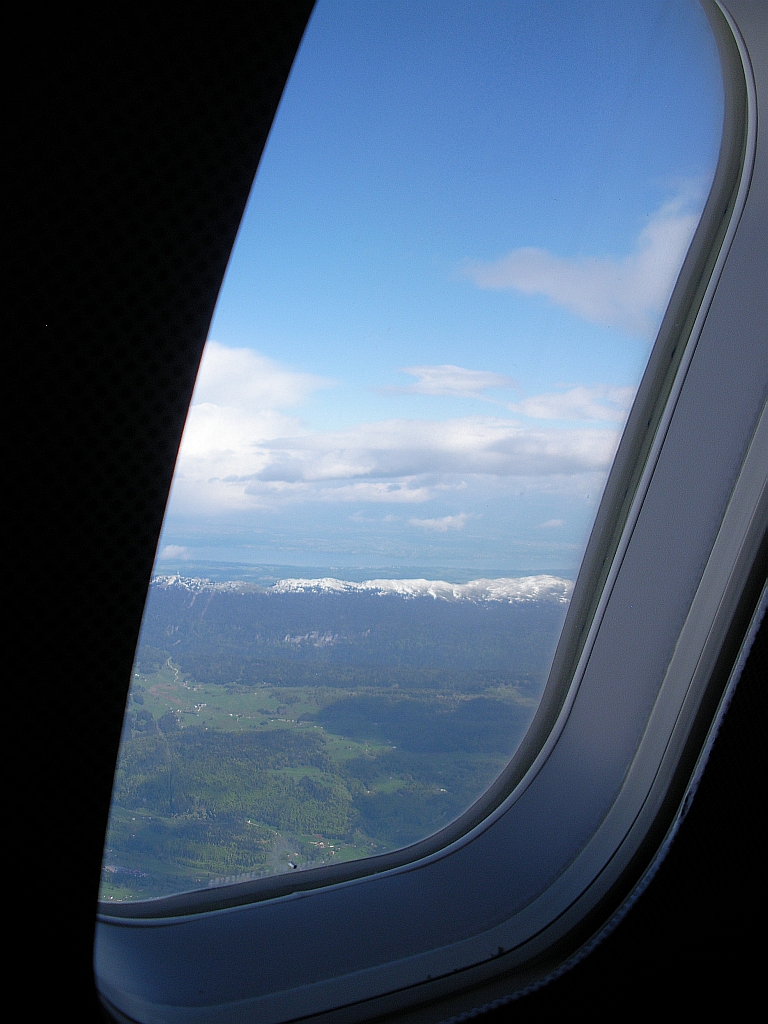 Draußen zogen die Wolken vorbei und nach einer Weile waren wir auch schon in der Nähe der Alpen und begannen den Landeanflug nach Genf.