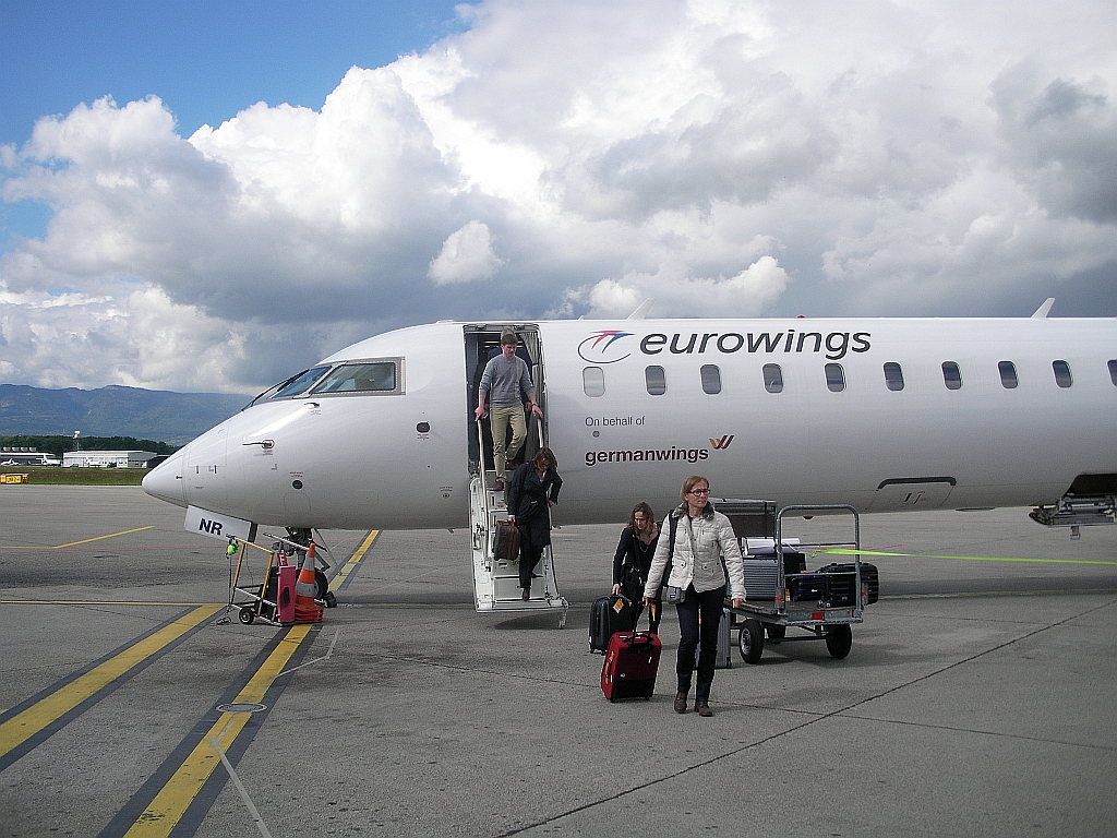 Gegen Mittag sind wir dann mit dem Taxi nach Köln-Mülheim gefahren und dann mit der Bahn nach Düsseldorf. Von dort aus sind wir dann mit Germanwings nach Genf geflogen. Durch unseren Frequent Traveller Status konnten wir auch wieder in die Lounge am Flughafen und haben dort ein paar Snacks zu uns genommen, sodass wir recht entspannt die Reise antreten konnten.