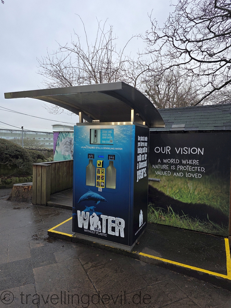 Dann machten wir uns in Richtung der oberen Gehege auf. Neues Feature im Zoo sind, zumindest für uns die seit über einem Jahr nicht mehr da waren, diese Automaten wo man für 50 Pence (!) seine Wasserflaschen auffüllen kann.