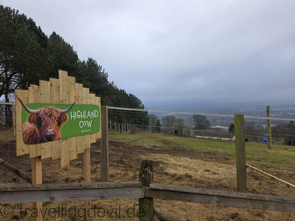 Wir machten uns dann langsam zurück zum Ausgang, vorbei an den puscheligen Highland Kühen.