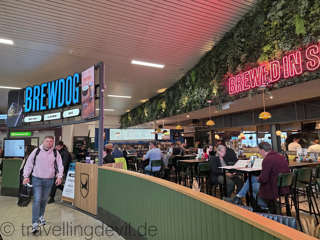 Airside dann die Qual der Wahl: Zur schottischen Brauerei gehen, die jetzt einen größeren Laden hat und durch eine echte Küche auch mehr Essensoptionen anbieten kann.