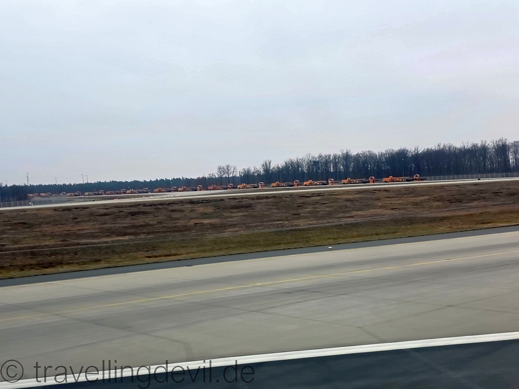 Wo bereits neben der Start- und Landebahn die Räumfahrzeuge für den erwarteten Schnee bereit standen. Gut, dass wir nicht erst Montag zurückgeflogen sind.