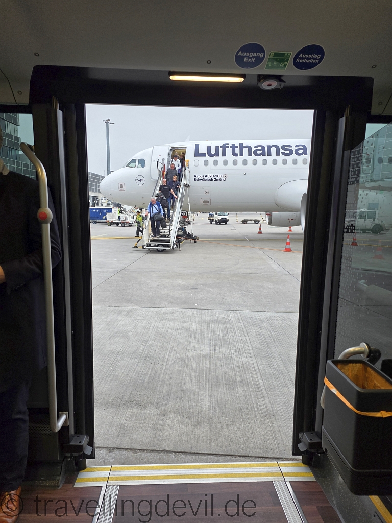 Leider ein Bus-Gate. Leider deswegen, weil wir als Umsteigezeit genau eine Stunde und 15 Minuten hatten. Und zu spät gelandet waren.