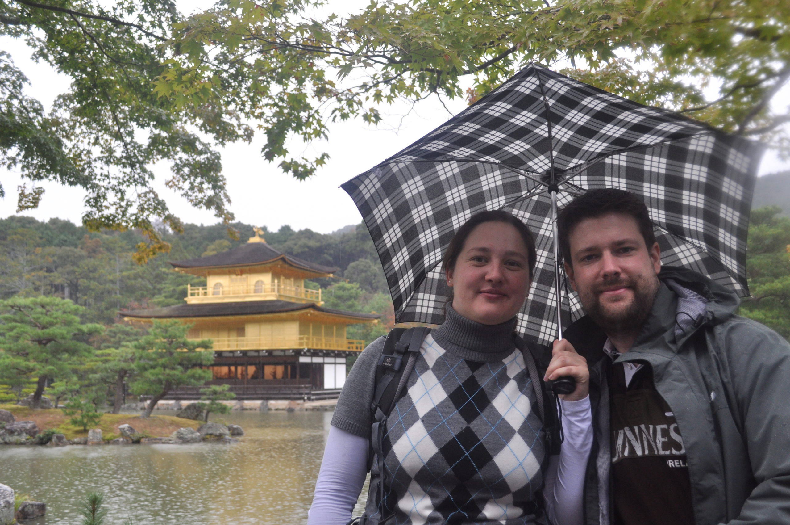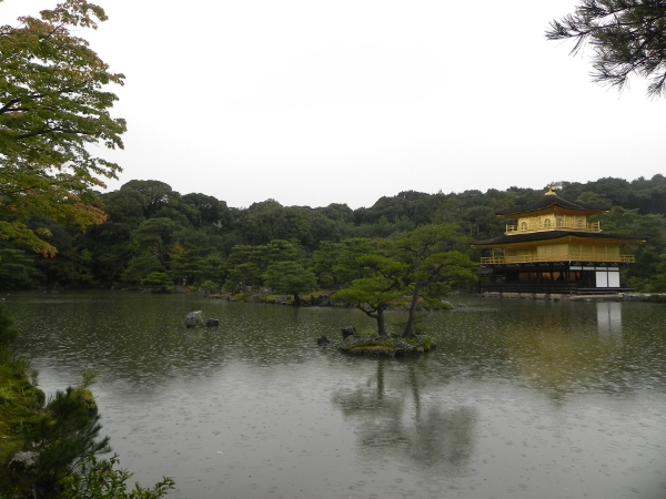 Danach ging es zu dem berühmten „Goldenen Pavillion“ oder auch Kinkaku Ji. Wunderschön, auch wenn das Wetter sich vom sonnigen, angenehmen Wetter am Morgen zum Dauerregen mit Windböen gewandelt hat.