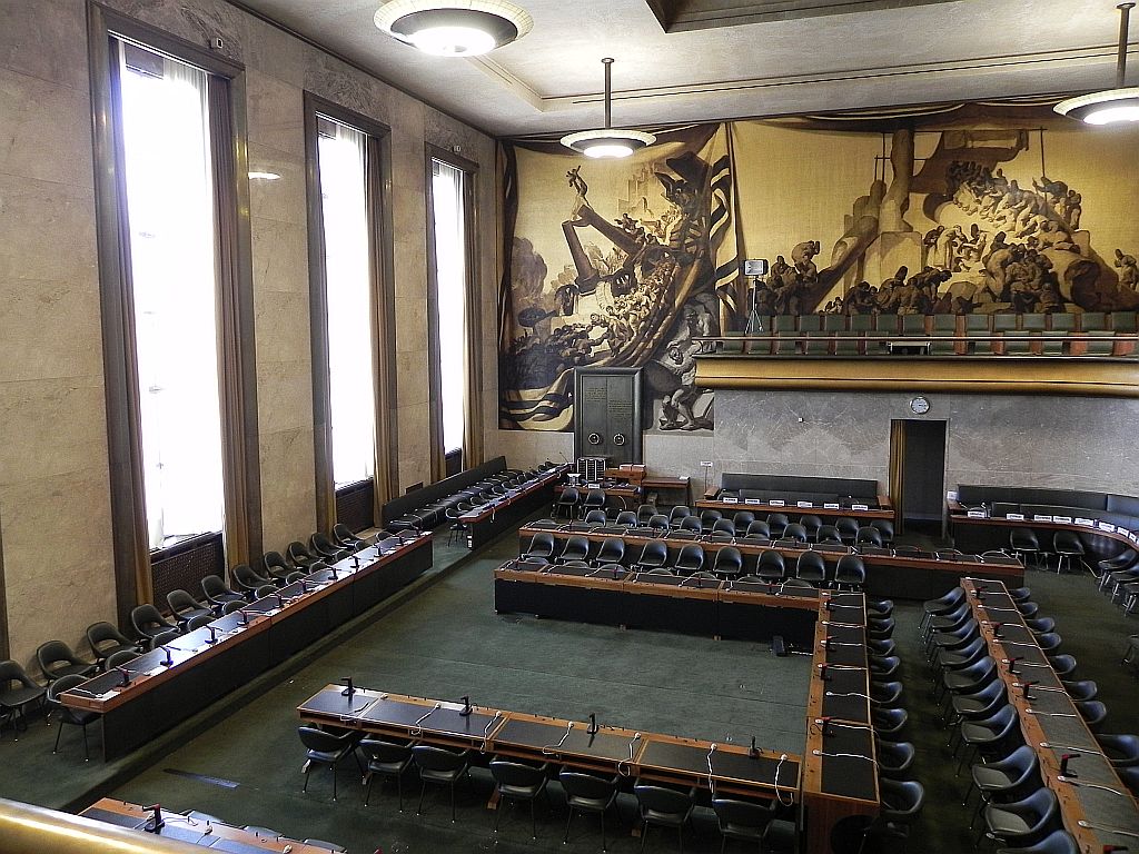 Alles in allem recht ähnlich der UN in Wien, auch wenn in dem alten Teil des Gebäudes viel an die Zeit des Völkerbundes erinnert hat, so zum Beispiel das Plenarsaal der WHO …