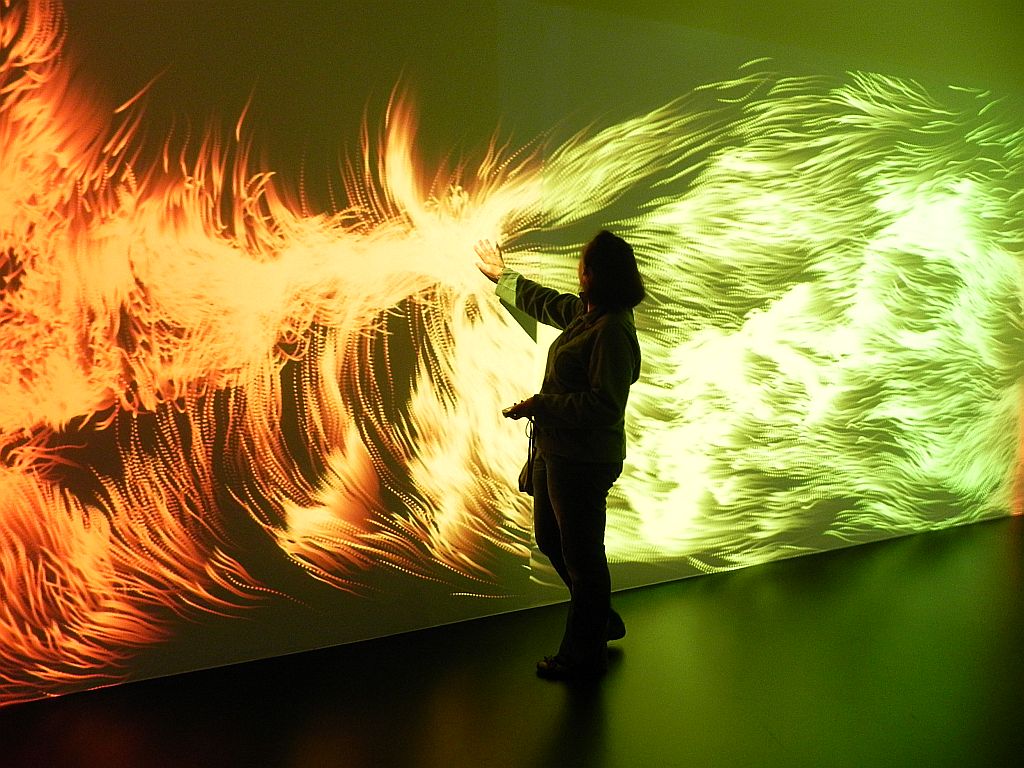 Und diverse, künstlerisch wertvolle Ausstellungsstücke wie diese interaktive Installation die Meike gerade ausprobiert.